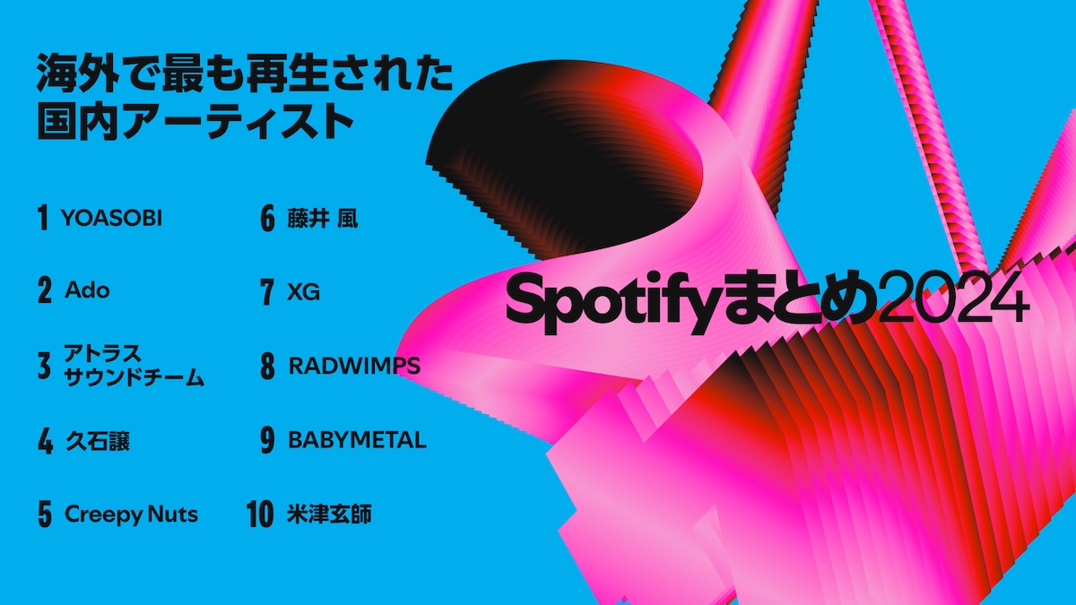 「Spotifyまとめ2024」で「海外で最も再生された国内アーティスト」の第3位にアトラスサウンドチームがランクイン!!