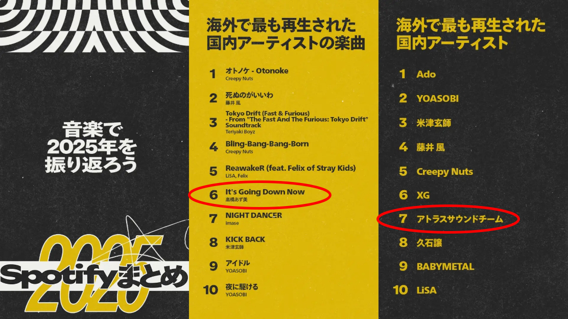 「Spotifyまとめ2025」にてアトラスサウンドチームと『It’s Going Down Now』がランクイン!