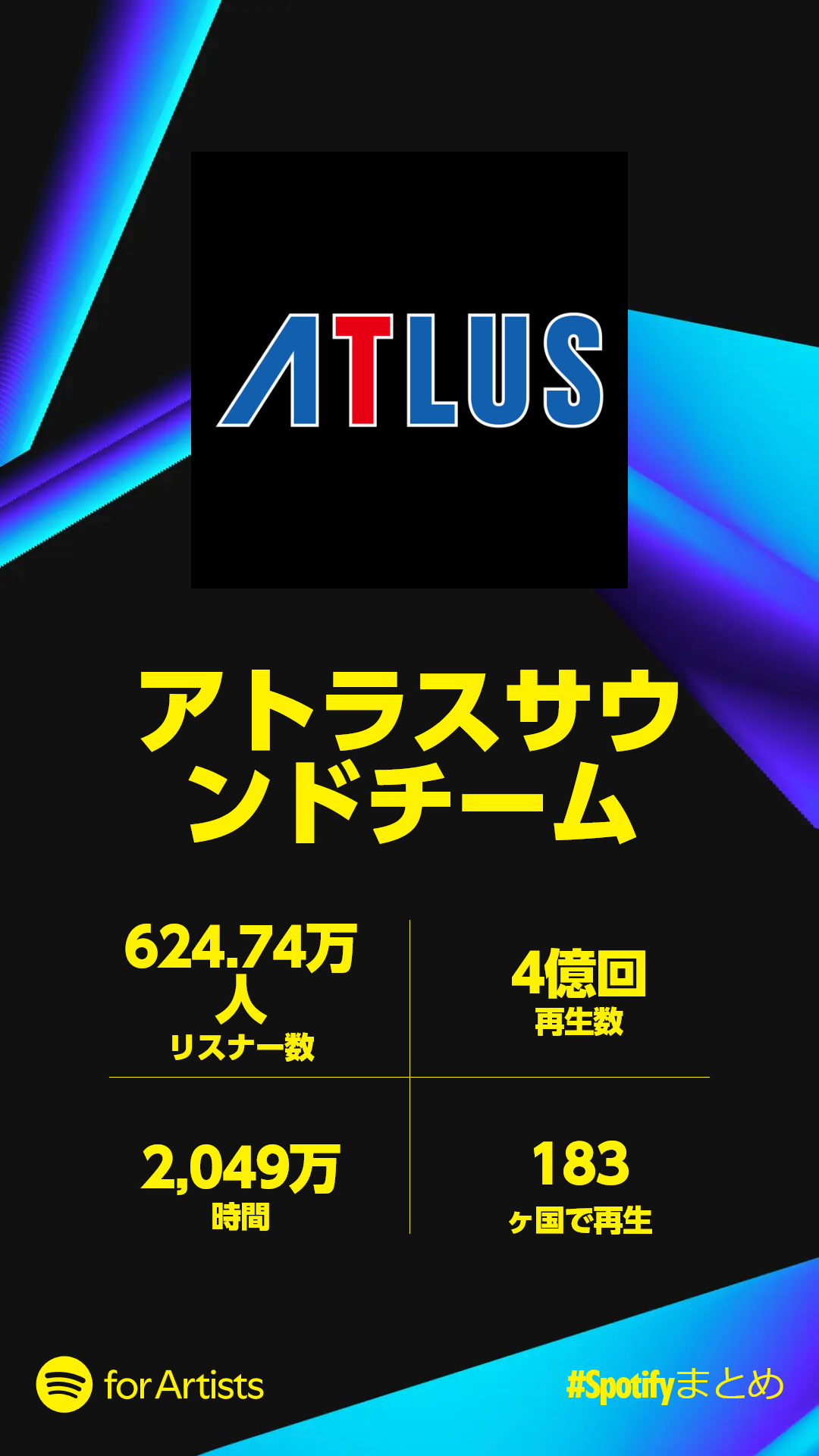 そして今年は624.74万人のリスナーの皆様にアトラスの楽曲をお楽しみいただきました!