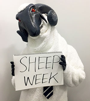 SHEEP WEEKが来週スタートということで、羊人間が出勤してきました!SHEEP WEEK中はちょくちょく登場しますので、怖がらずに可愛がってあげてください。