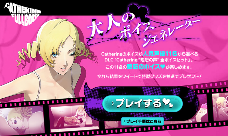 Catherineのボイスが人気声優11名から選べる【DLC】「Catherine“理想の声”全ボイスセット」。