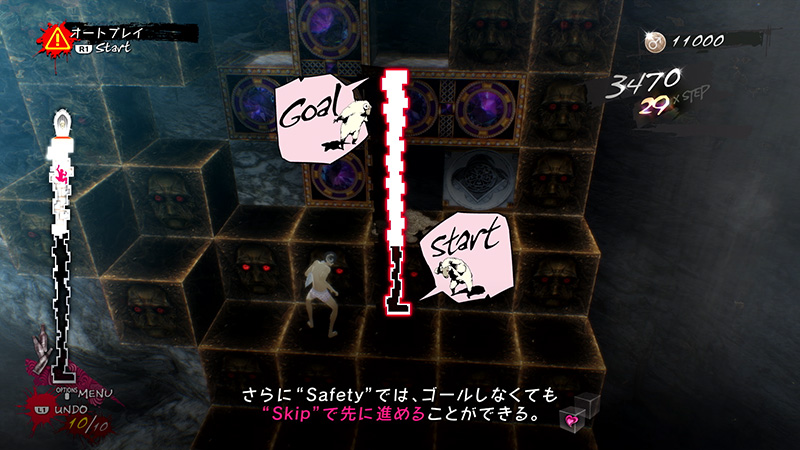 難易度は『キャサリン・フルボディ』で追加された、「Safety」でのプレイとなります。どなたでも必ずエンディングまでたどり着くことができるので、アクションパズルが苦手な方でも安心してプレイいただけます。