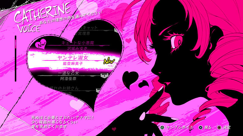 Catherineの声も沢城みゆきさんと能登麻美子さんから選べます!