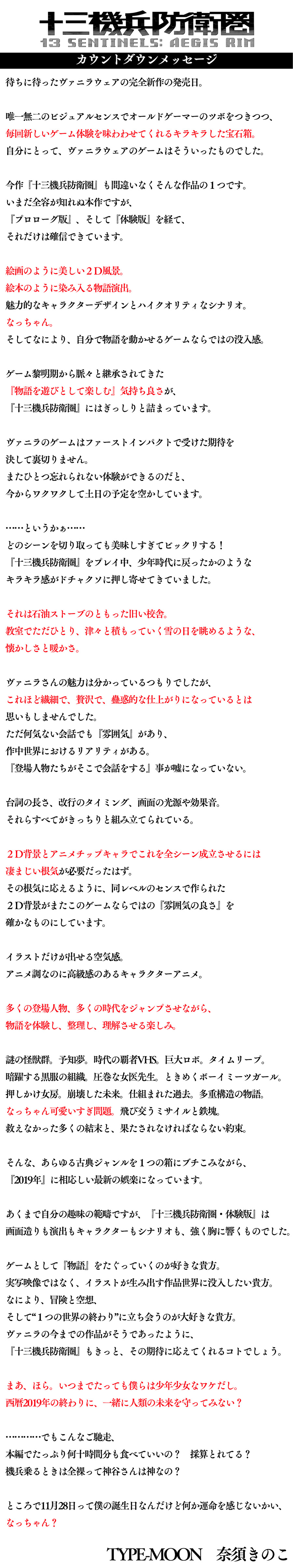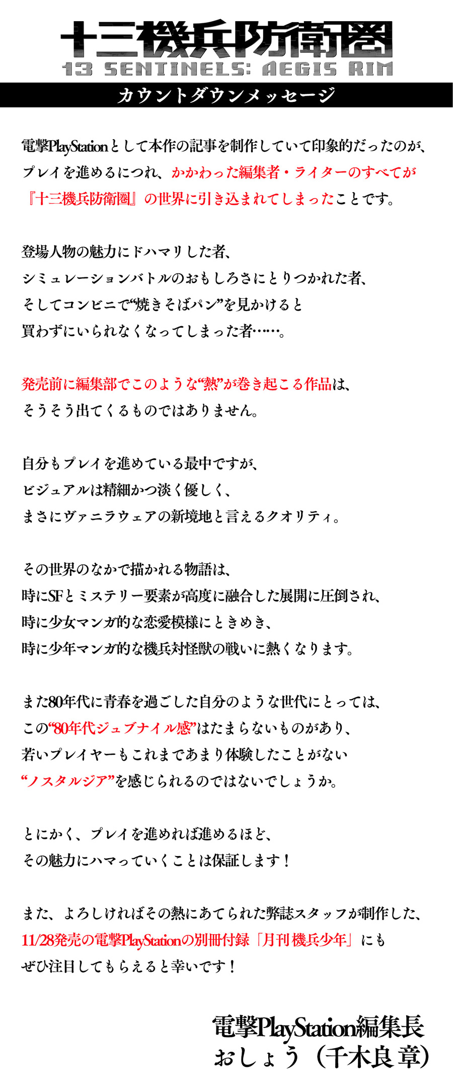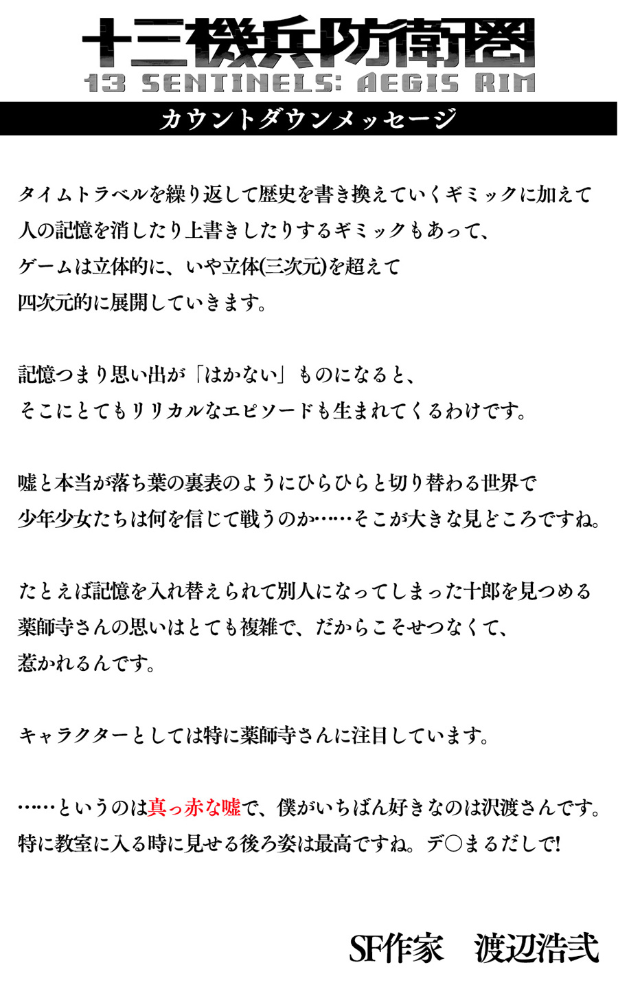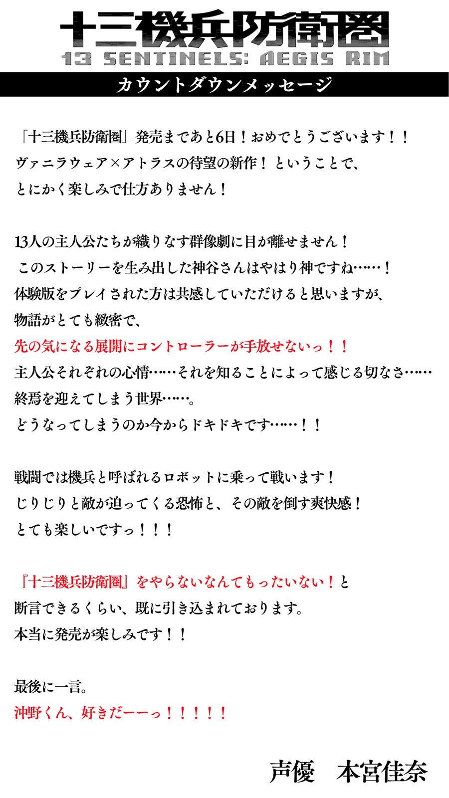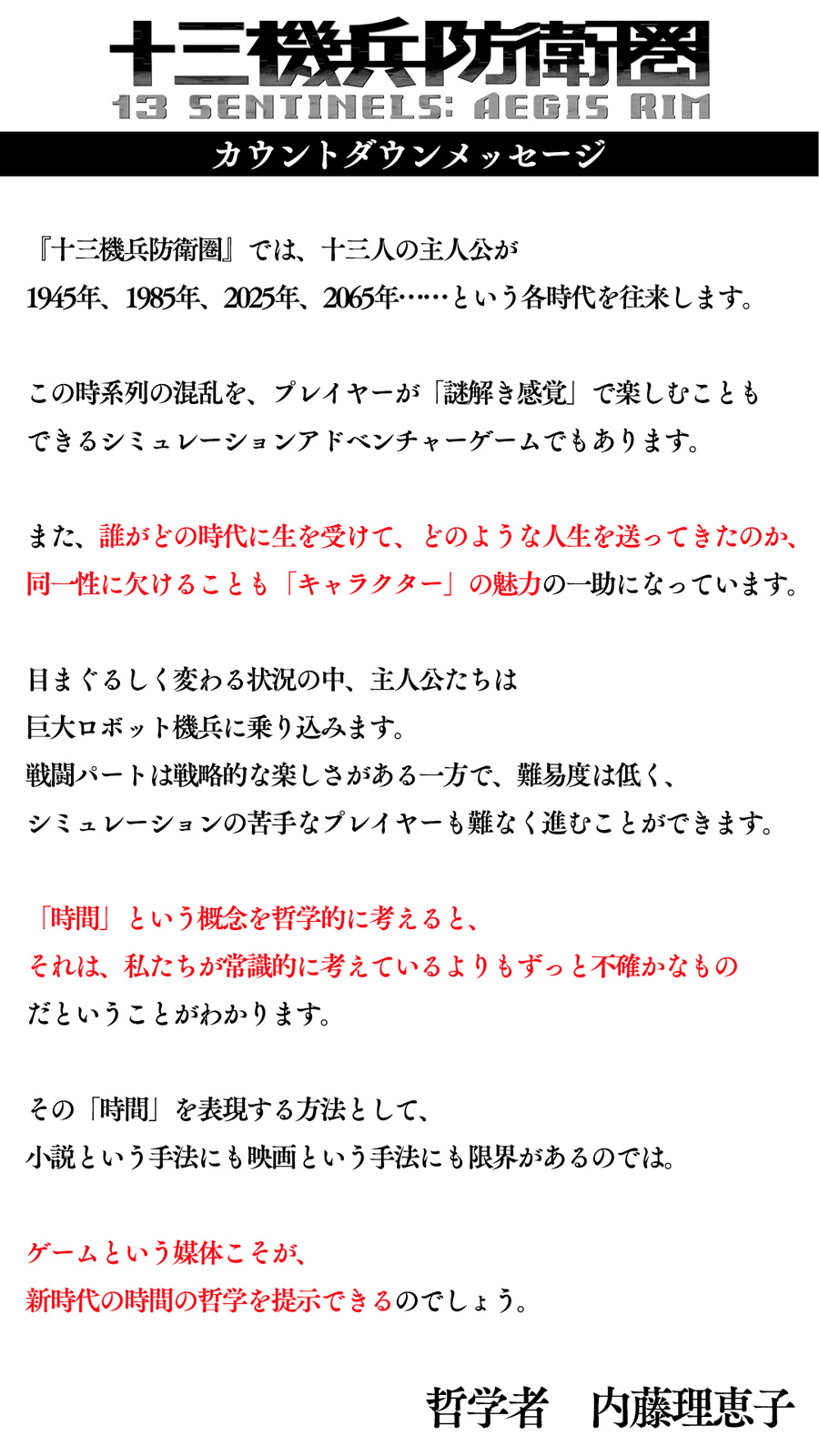 今後も『十三機兵防衛圏』をよろしくお願いいたします。