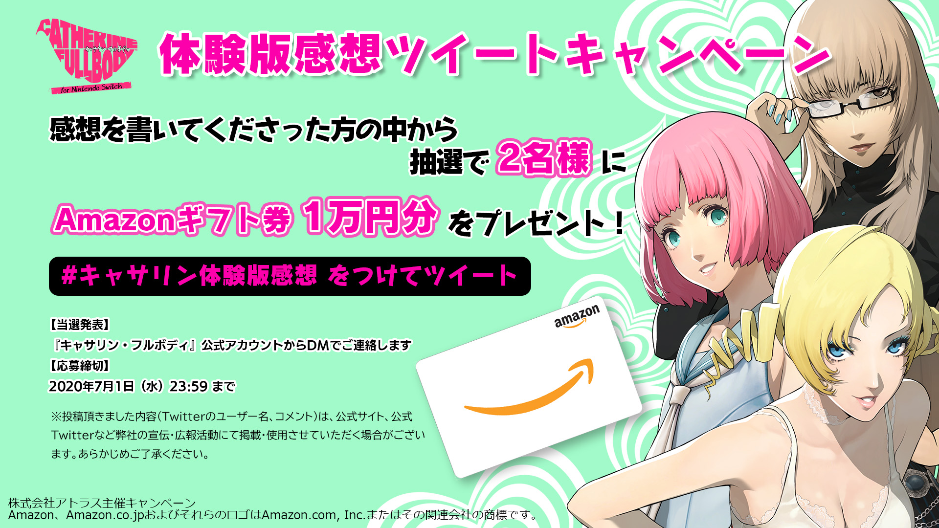 ハッシュタグ #キャサリン体験版感想 をつけて『キャサリン・フルボディ for Nintendo Switch体験版』をプレイした感想をツイートしてください。