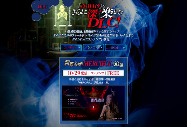 難易度や経験値・マッカ稼ぎMAP、BGM変更パックなどのダンロードコンテンツが登場!