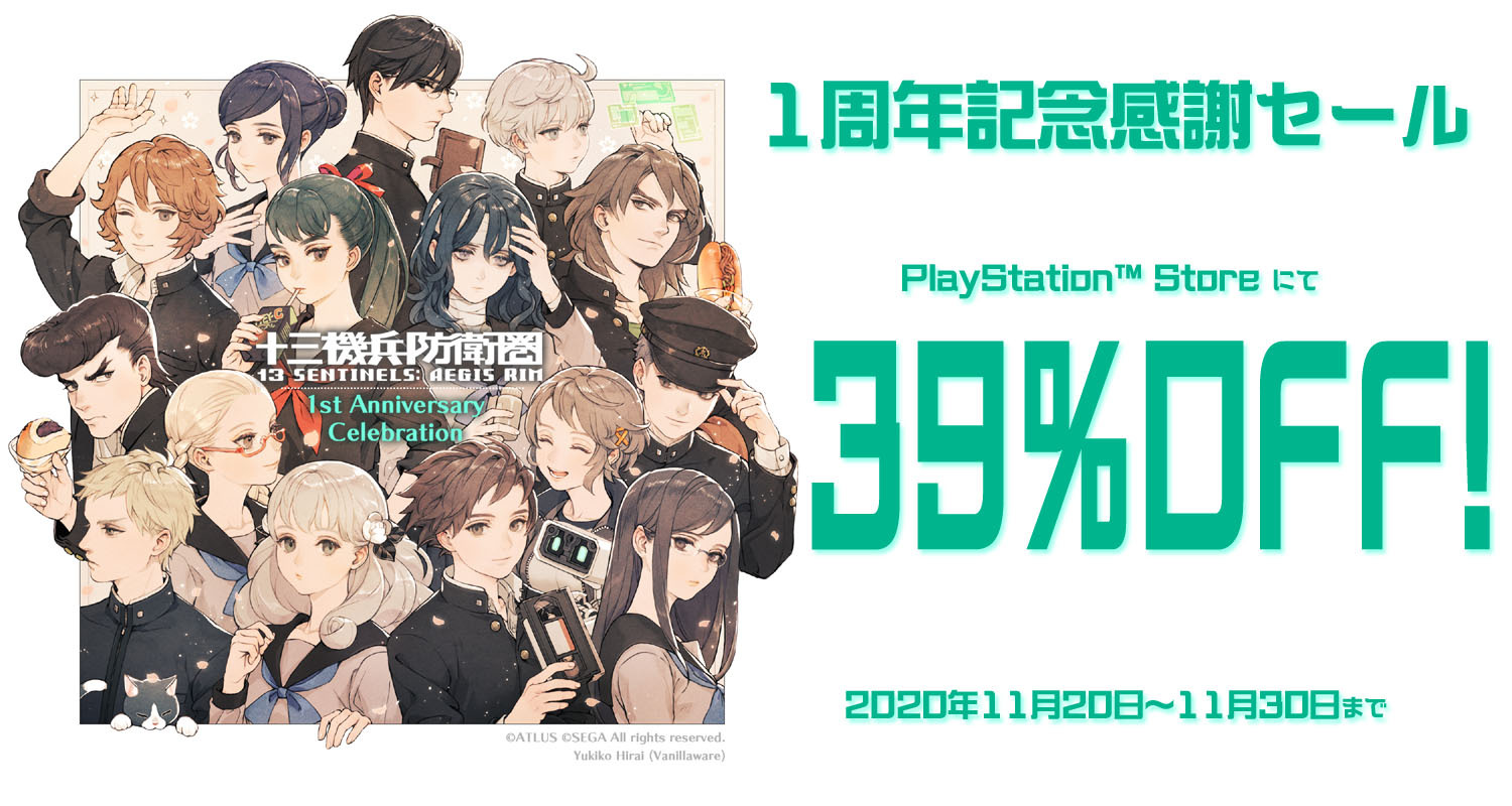この度、株式会社アトラスは2020年11月28日(土)にPS4用ソフト『十三機兵防衛圏』が発売1周年を迎えること、また、たくさんのご声援、高評価の声を頂きましたことを受け、PS Storeにて『十三機兵防衛圏』ダウンロード版のディスカウントセールを、本日より開始いたしました。