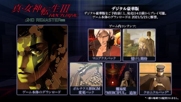 PlayStation®4&Nintendo Switch™にて好評発売中の『真・女神転生III NOCTURNE HD REMASTER』が、「真・女神転生」シリーズでは初となるSteam版を2021年5月25日(火)に発売いたします。