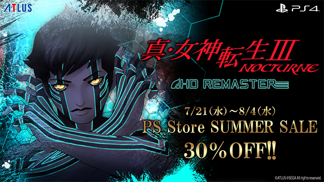 本日7月21日(水)から、PS Storeにて『真・女神転生III NOCTURNE HD REMASTER』が30%OFFでお買い求めいただけるセールを開催中です!