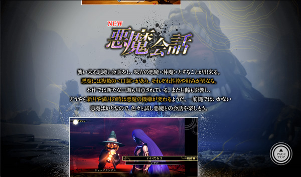 「悪魔会話」「合体」、「成長」などのシステムを紹介。