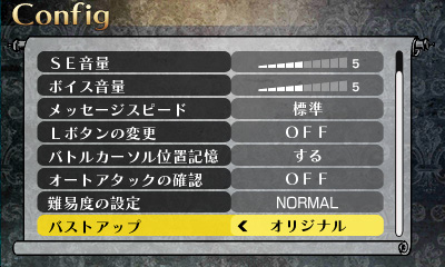 ↑「Config」で、3DS版の「通常」、「デフォルメ」、DS版の「オリジナル」に変更可能。▼「通常」のバストアップ