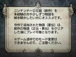 そして「アペンドモード」は、まずは前作準拠のシナリオがプレイ出来、正伝異伝をクリア後に亜伝がプレイ出来るようになるモードです。