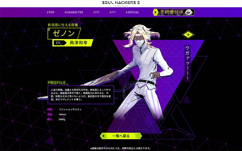 また、PV02内で気になる動きをしていた「鉄仮面」「ゼノン」、新たに登場した「恩田一郎」の紹介ページも公開しました。