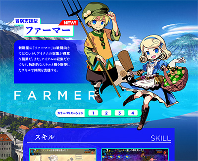 2017.05.26 新職業「パイレーツ」「アルケミスト」「モンク」「ファーマー」の詳細ページを公開!店舗特典画像も追加! #ゲーム情報 #世界樹と不思議のダンジョン2 SHARE こんばんは、世界樹と不思議のダンジョン2広報です。 本日『世界樹と不思議のダンジョン2』公式サイト内、「キャラクターメイク」のページに「パイレーツ」 「アルケミスト」 「モンク」 「ファーマー」 の詳細情報を追加いたしました。 いずれの職業も本作から追加された新職業となります。各職業の特徴やスキル、カラーバリエーションの情報が公開されていますので、要チェックです! さらに今週も、購入ガイドを更新いたしました。店舗オリジナル特典の絵柄が新たに公開になっておりますので、こちらもぜひご確認ください! 世界樹と不思議のダンジョン2 ジャンルRPG 発売日2017年8月31日 3DS 公式サイト ニュース一覧