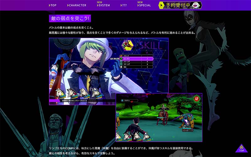 新たに公開した「システム」ページでは、バトルの基礎を始め、攻略のポイントとなる「サバト攻撃」やスキルについて紹介しています。