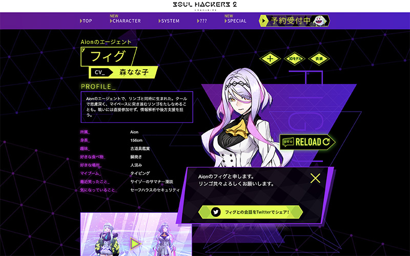 「リンゴ」&「フィグ」キャラクターPVの公開に合わせて『ソウルハッカーズ2』公式サイトを更新しました。
