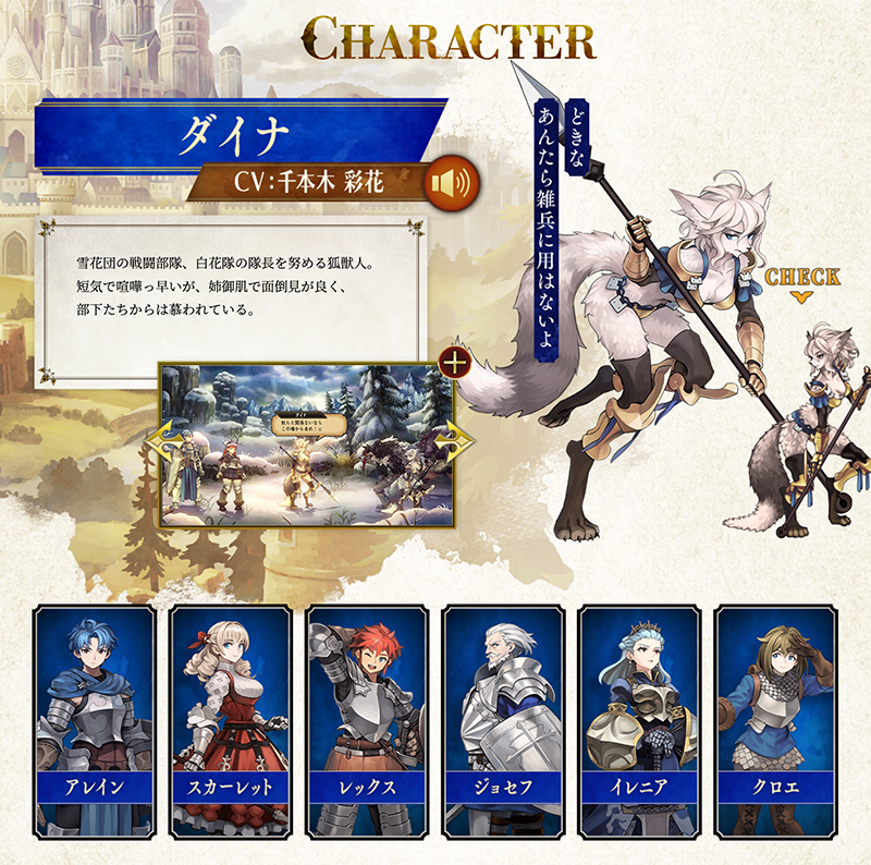 「CHARACTER」ページでは新たに主人公アレインの仲間になる