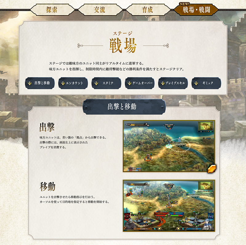 今回公開した「SYSTEM」ページでは<戦場(ステージ)・戦闘(バトル)>について紹介!