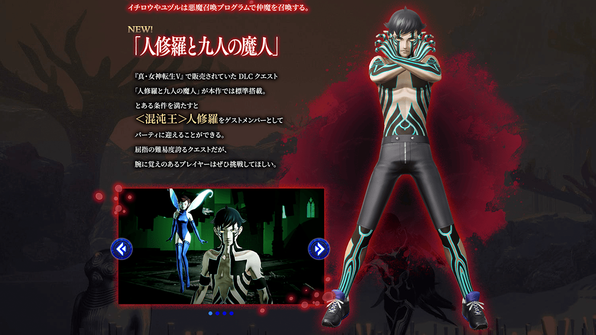今作では、とある条件を満たすとゲストキャラクターとして「人修羅」をパーティに迎え入れることが可能です!