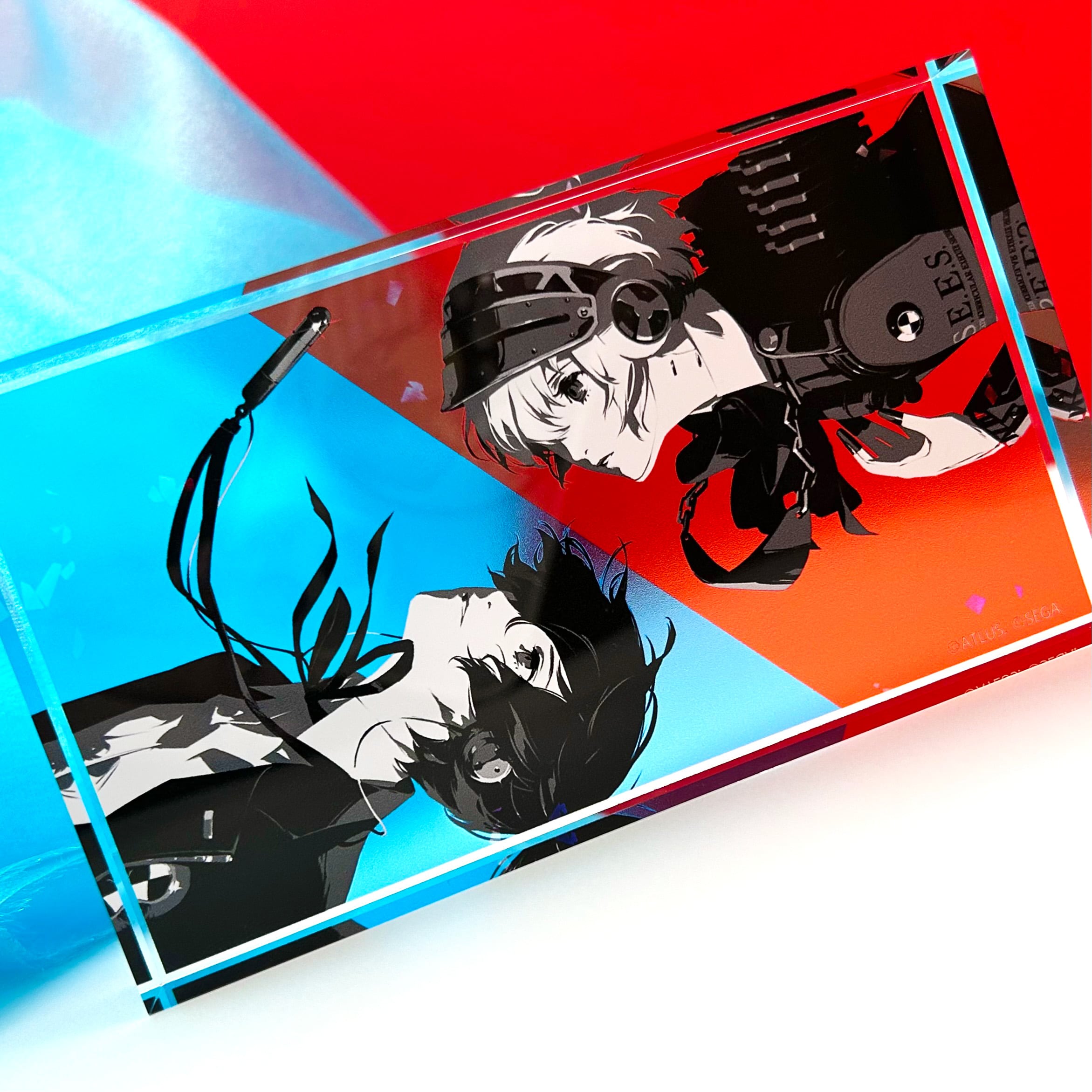 『ペルソナ3 リロード: Episode Aegis』のキービジュアルが美しいアクリルブロックに。主人公とアイギスが印象的です。