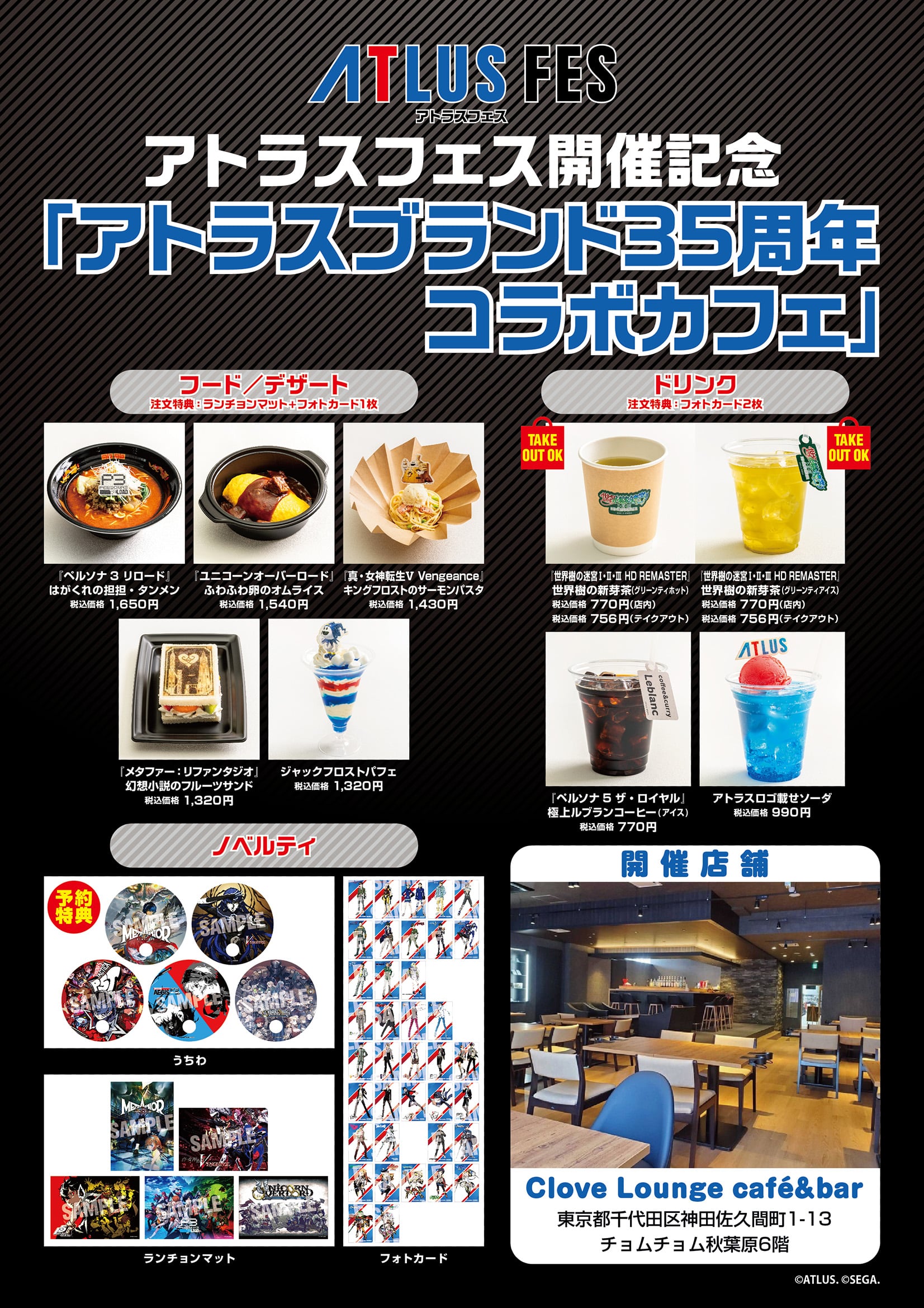 アトラスブランド35周年を記念したアトラス初の大型単独イベント「アトラスフェス」の開催を記念し、「アトラスブランド35周年コラボカフェ」を2024年6月6日(木)~6月30日(日)まで、秋葉原にある「Clove Lounge」にて開催!