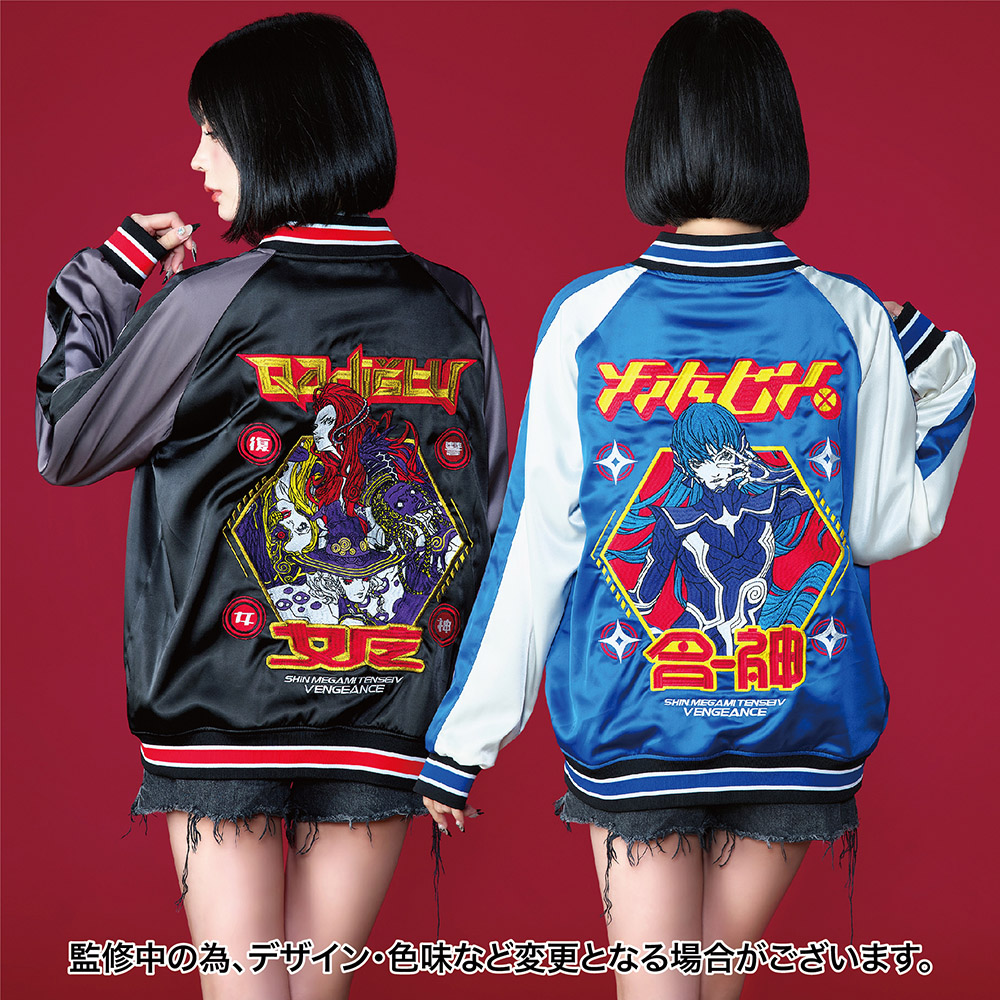過去の「真・女神転生」シリーズコラボ時にも大好評を博した刺繍スカジャンや、Tシャツなどのアパレル、雑貨などが『真VV』で登場!店頭・通販サイトにて販売中です。