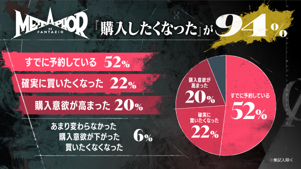 “『メタファー:リファンタジオ』を購入したくなった”と感じたのは94%でした!