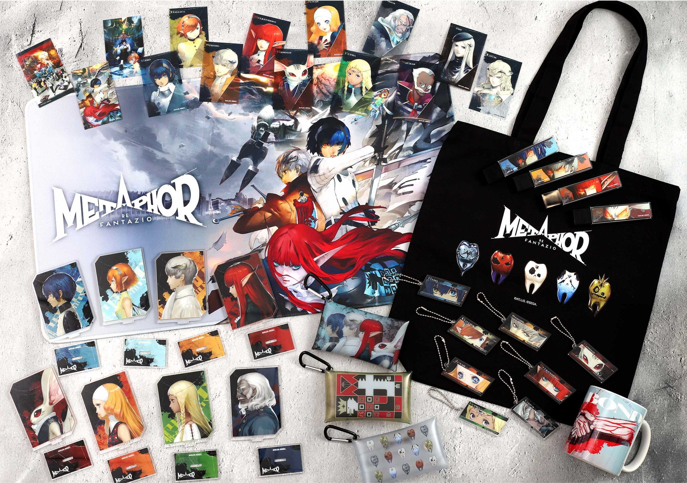 また、フェア開催を記念して、『メタファー:リファンタジオ』の新作グッズ発売が決定!キービジュアルを大きく使用したラバープレイマットやNEWBONDのイラストのマグカップ、目元のチェックなどに最適なスティックミラーをはじめ多数のグッズを展開します!