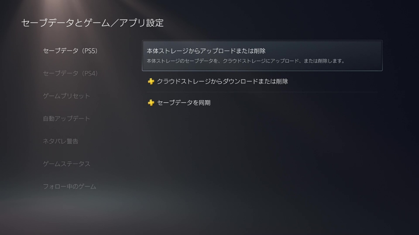 3.「セーブデータ(PlayStation®5)」内にある「本体ストレージからアップロードまたは削除」を決定します。