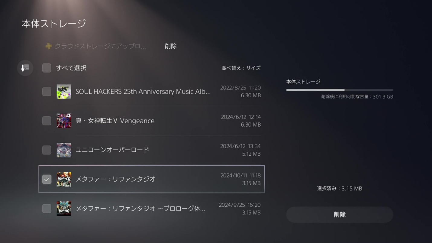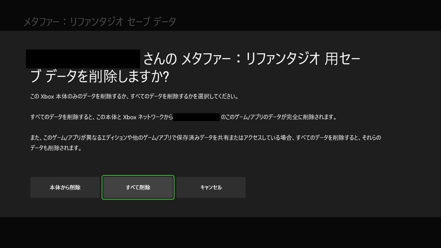 (本体、クラウドの両方のストレージから、製品版のすべてのセーブデータが一括で削除されますのでご注意ください)