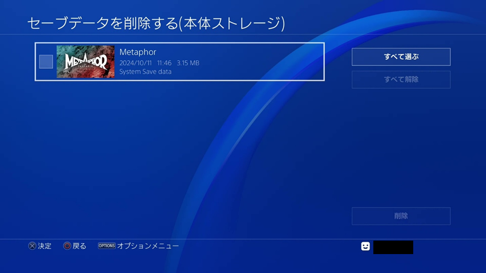 4.製品版「メタファー:リファンタジオ」のシステムセーブデータを削除します。