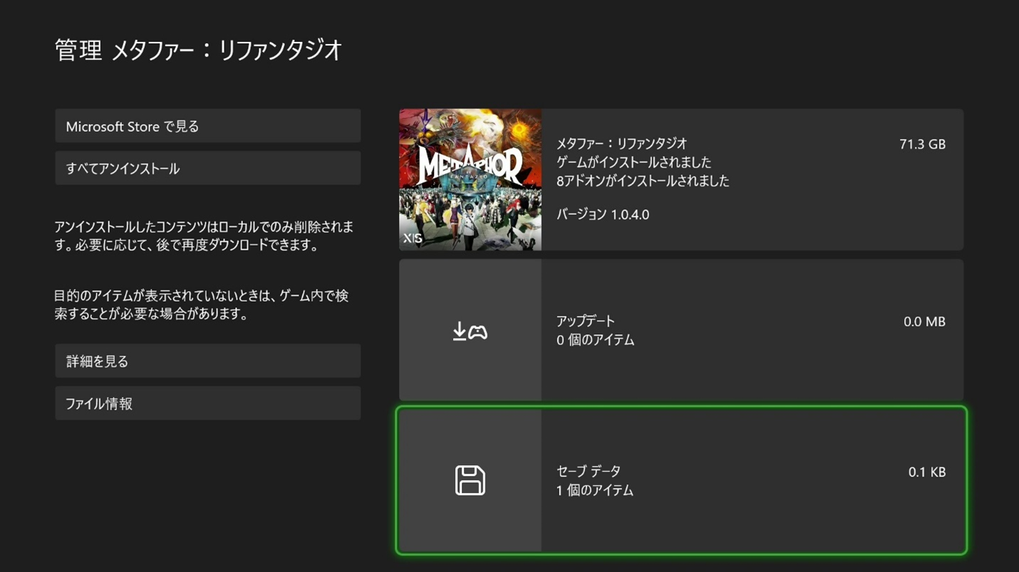 4.製品版「メタファー:リファンタジオ」のセーブデータを削除します。