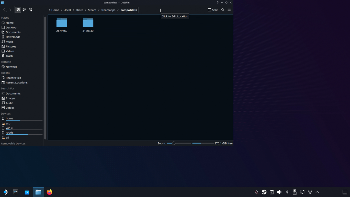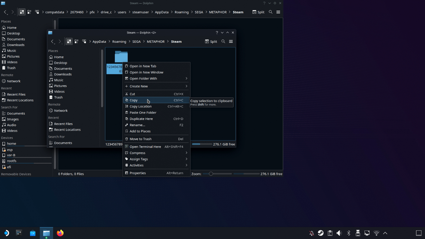 3.File Manager (デフォルトはDolphin)を選択すると、直接compatdataフォルダに遷移します。