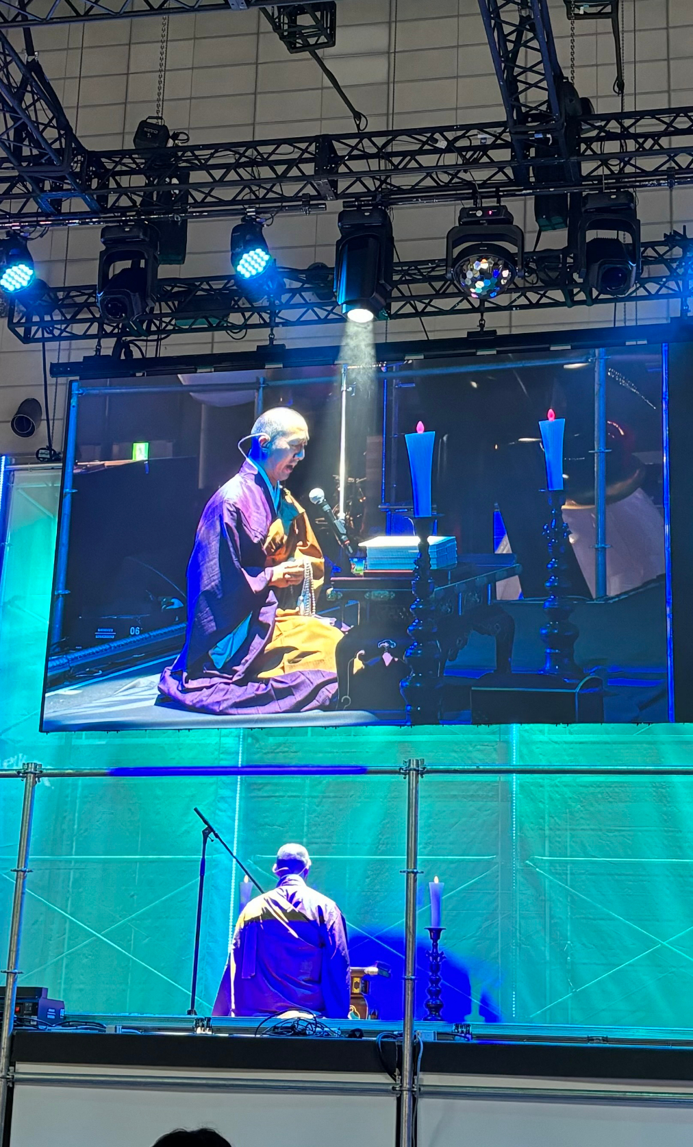 ゲーム内楽曲の歌唱を務める、長現山妙常寺 住職・本良 敬典さんによる生歌唱ライブを実施!