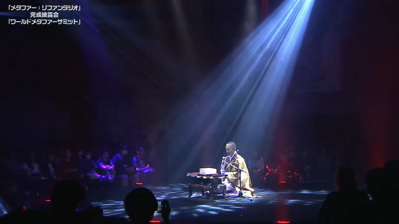 まずは『メタファー:リファンタジオ』にて歌唱を務める、本良敬典さん(長現山妙常寺 住職)のオープニングパフォーマンスがスタート。ステージが一気に「メタファー」の雰囲気に!