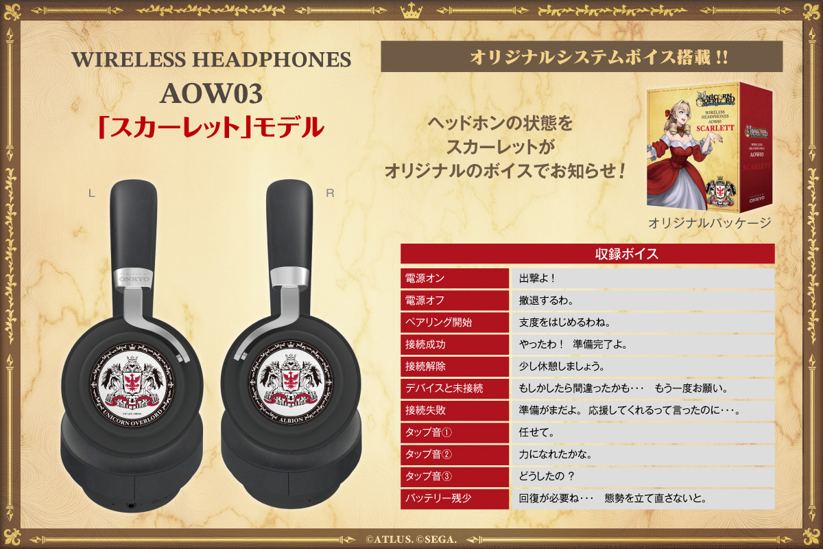 オンキヨー株式会社のヘッドホン「ANIMA AOW03」とコラボした本モデルは、「アレイン」モデル、「スカーレット」モデルの計2種類がラインナップ!