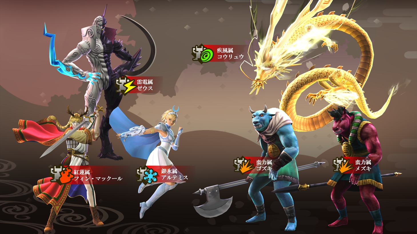 疾風属 コウリュウ、蛮力属 ゴズキ、蛮力属 メズキ