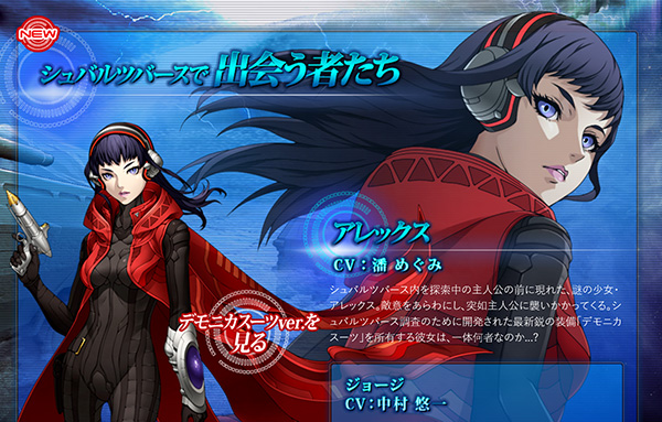 STORY&CHARACTERのページに、シュバルツバース内を探索中の主人公の前に現れる謎の少女アレックスの紹介を追加いたしました。こちらのページではデモニカスーツver.のアレックスも見ることができます。