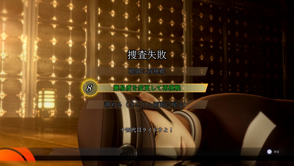 ・ライドウ死亡時、難易度を変更して再挑戦(コンティニュー)の項目を追加