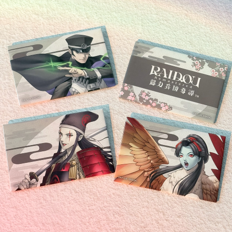 ライドウ、オシチ、ヨシツネのイラストを飾って楽しめます。