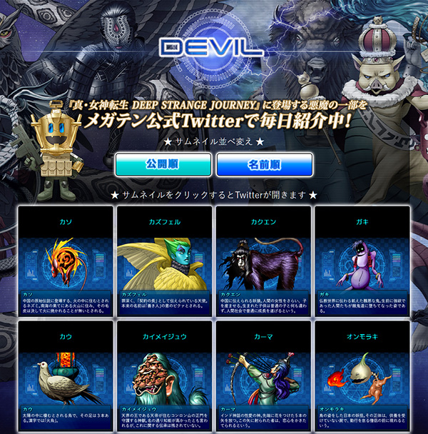 メガテン公式Twitterで毎日紹介中の悪魔を一覧にまとめたDEVILページを公開!本作に登場する多種多様な悪魔をご覧ください!