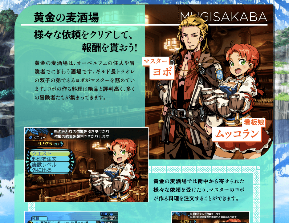 『世界樹と不思議のダンジョン2』公式サイト内、「冒険をもっと楽しく!」ページに街の施設「黄金の麦酒場」を追加いたしました。