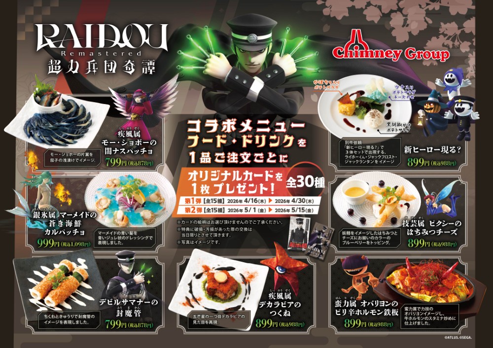 『ライドウ』シリーズ20周年を記念して、外食チェーン「チムニーグループ」とのコラボが決定しました。