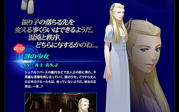 STORY&CHARACTERのページに、「謎の少女」の紹介を追加いたしました。主人公の前に現れ、不思議な言葉を残して去っていく、謎の少女。果たして彼女の正体は…?