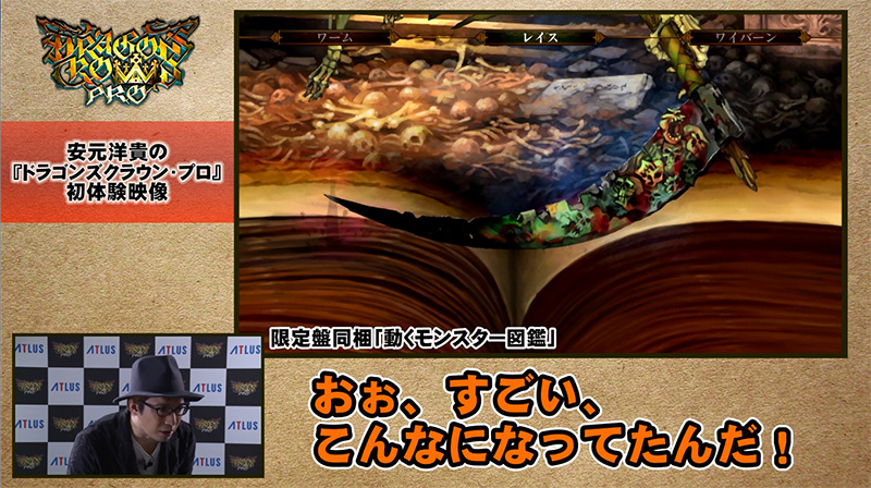 4K環境で一通りゲームプレイをしていただき、限定版同梱のコンテンツ「動くモンスター図鑑」も体験して頂きました。その後、オリジナル版『ドラゴンズクラウン』のプレイ経験も豊富な安元さんならではの視点で、『ドラゴンズクラウン・プロ』の見所についてコメントして頂いています。ウィザードの音声収録時に心がけたことなども盛り込まれ、貴重なインタビュー映像となっていますのでぜひお見逃しなく!