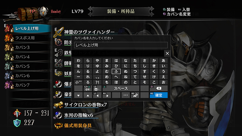 装備セットのカバンのリネームは可能でしょうか?PS3版では不便だったのでぜひともお願いしたいところです。 - 【回答】