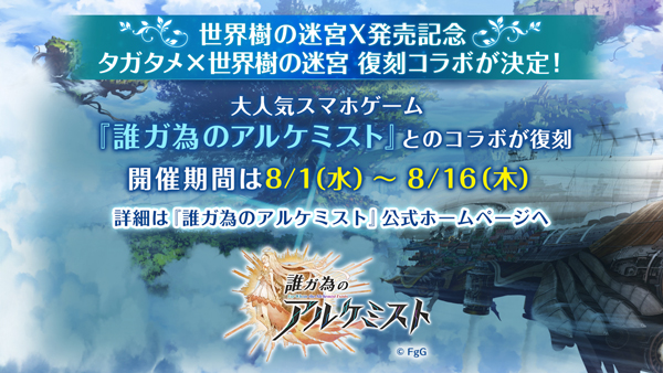 昨年8月に世界樹の迷宮10周年を記念して行われた、大人気スマホゲーム『誰ガ為のアルケミスト』とのコラボレーションが復刻されることが決定しました!