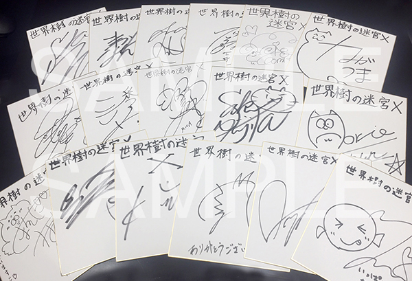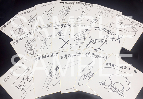 ご自身のアカウントから世界樹の迷宮 広報アカウント(@SQ_kouhou)をフォローし、ハッシュタグ「#世界樹X感想」をつけて『世界樹の迷宮X』をプレイした感想をツイートしてください。色紙のご希望がある場合は、ツイート内に希望する出演声優の方のお名前を書いてください。