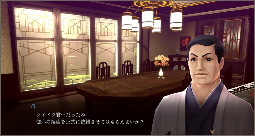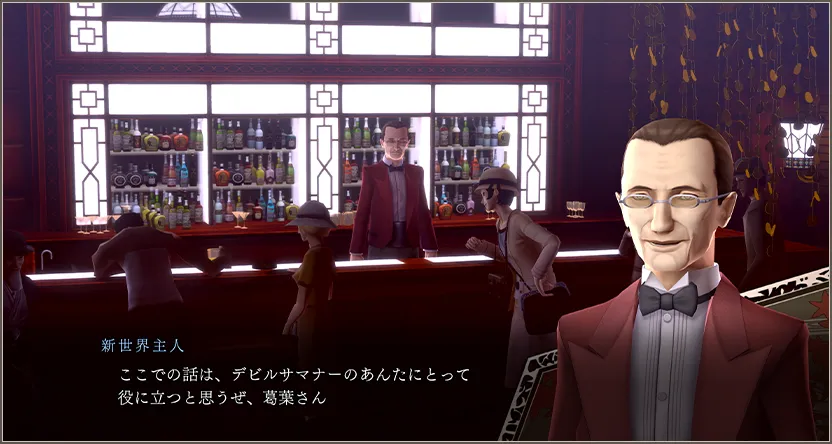 探偵業を通じて情報収集を行い、悪魔絡みの事件があれば、速やかにその処理に当たる。身に纏う外套の下には、退魔の刀と銃、そして仲魔を収めた管を装備している。