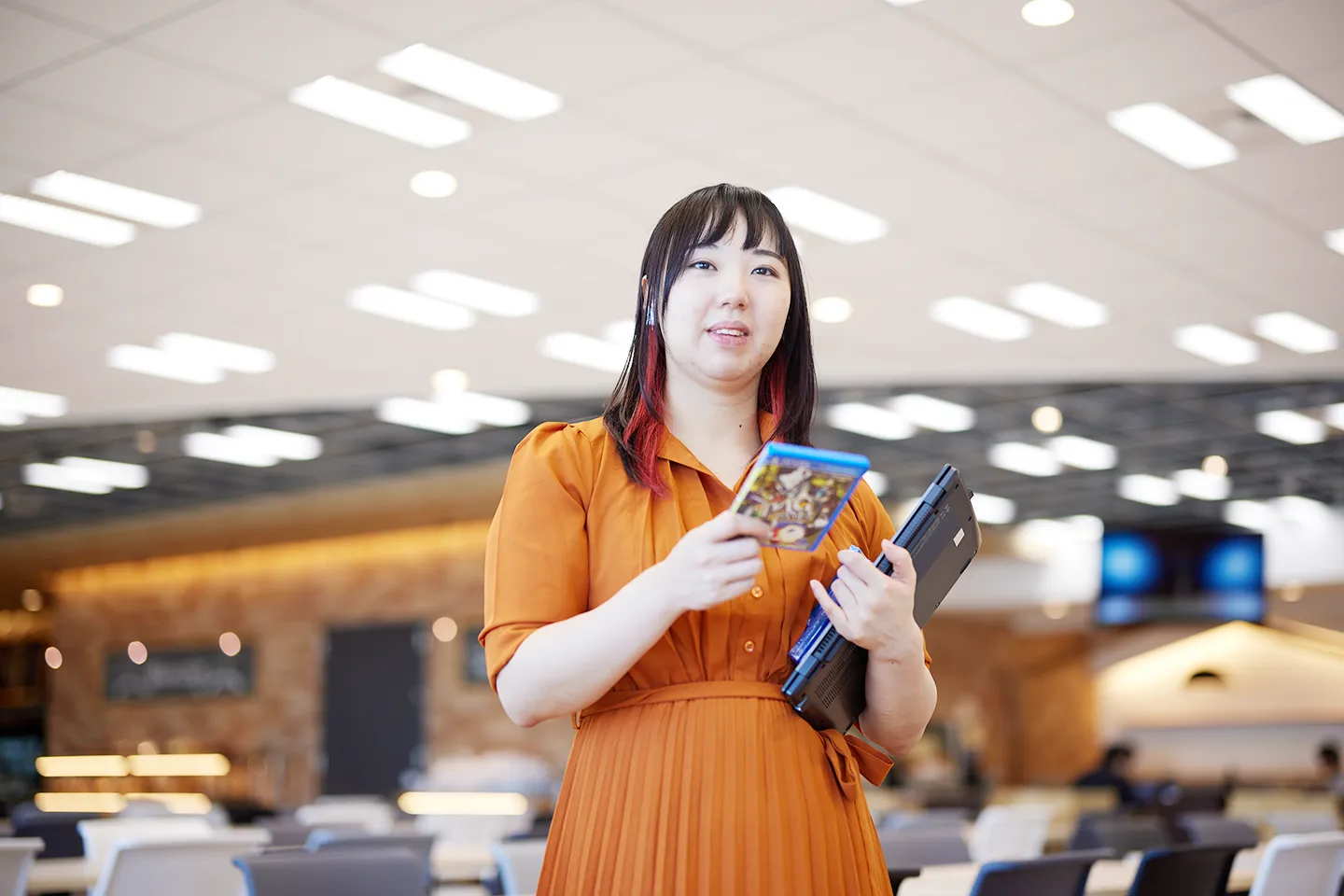 作品が完成し、エンドロールに自分の名前が載っているのを見た時は、思わず写真を撮って友人に送ってしまうほど嬉しかったです。 アトラス作品のエンドロールには、何百名もの名前が連なりますから、私の影響力はたったの“数百分の一”とも言えます。 けれど、どの“一”が欠けたとしても、決して完成には漕ぎ着けなかった。 画面に流れる名前を見ると、誇らしく思うとともに、気が引き締まります。 現在はブリッジチームの業務だけではなく、通訳者としてボストンの合同会社説明会に参加するなど、アトラスがよりグローバルな企業となるための採用活動を支援させていただいています。 私自身も10代の頃、アメリカの学校に通っていましたが、クラスでは日本のゲームが大流行していたことをよく覚えています。 どこの国でも、どんなバックグラウンドを持つ人も、感動できるゲームがある。 そんなゲームを世に送り出せる仕事がここにある。 これからは、アトラスと未来の仲間を繋ぐ架け橋にもなれたらと思います。